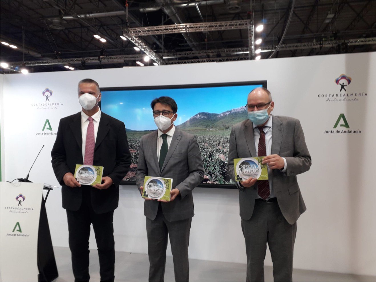 Vicente García Egea, delegado territorial de la Consejería de Turismo de la Junta de Andalucía; Manuel Guzmán, diputado de Cultura y Cine de la Diputación de Almería; Dietmar Roth, coordinador del proyecto Destination AlVelAl.