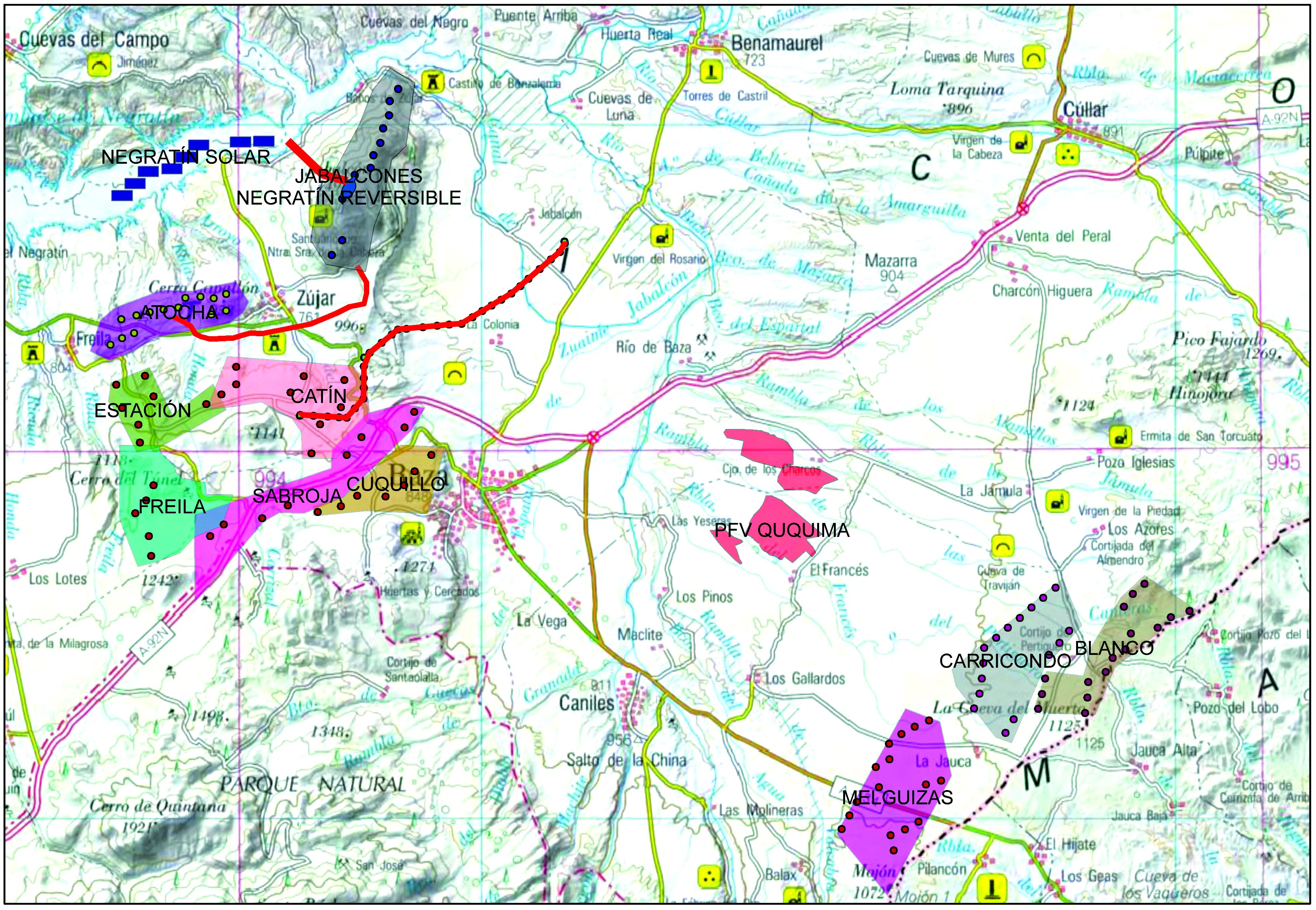 Según información publicada en su sitio web, Red Eléctrica de España ya ha otorgado permisos de acceso a más de 3.000 MW en proyectos nuevos de energías renovables en la provincia de Granada, aunque con la capacidad de renovables instalada actualmente de 750 MW ya se genera la mitad de la energía consumida. En otras palabras, la gran mayoría de la energía renovable generada en la provincia en el futuro se consumirá lejos de aquí. Para Andalucía en total los números son aún más desequilibrados dado que ya existen permisos de acceso para más de 35.000 MW entre proyectos eólicos y fotovoltaicos, necesitando autopistas enormes como la línea 400 Baza-Caparacena para evacuar esa energía a los centros grandes de consumo. No son líneas para mejorar el suministro de la zona sino líneas de transporte.
